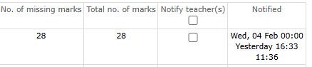 All teachers can be selected by using the 'Notify teacher' tickbox, and then selecting 'Notify' or individual staff can be selected from the list.