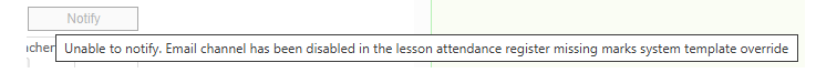 If the email channel is disabled in the template setting a message will show on the attendance status page: